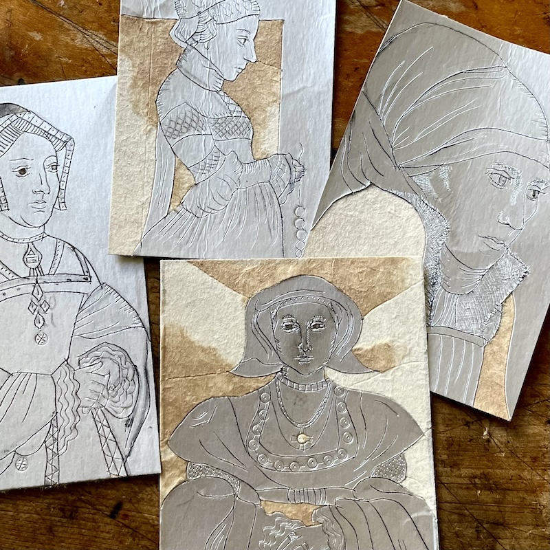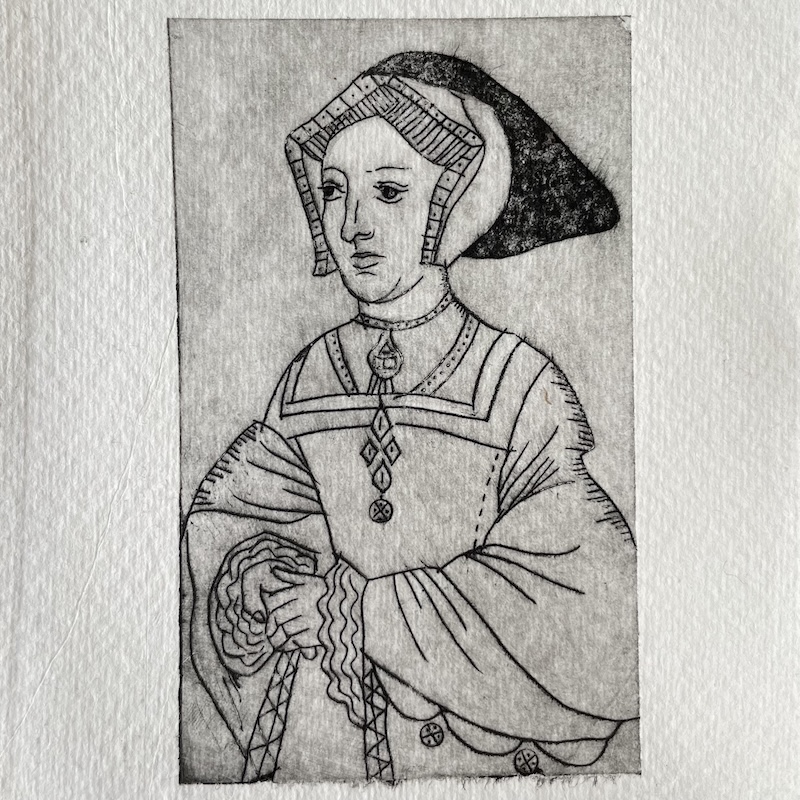 So entstanden kleine Erklärungen, die sich schnell zu Mini-Essays auswuchsen. Dazu kam eine eigensinnig-spielerische Auseinandersetzung mit der geschriebenen Kunstgeschichte: Wie viel lässt sich überhaupt über die dargestellte Frau herausfinden – in einer männlich dominierten Kunst- und Geschichtsschreibung? Im Fall der Frauen Heinrichs VIII. natürlich viel! Recherche liegt mir, und so nahm die Sache Fahrt auf, und plötzlich war ich mittendrin in einem ganzen Kosmos von Frauen, Bildern und Geschichten.